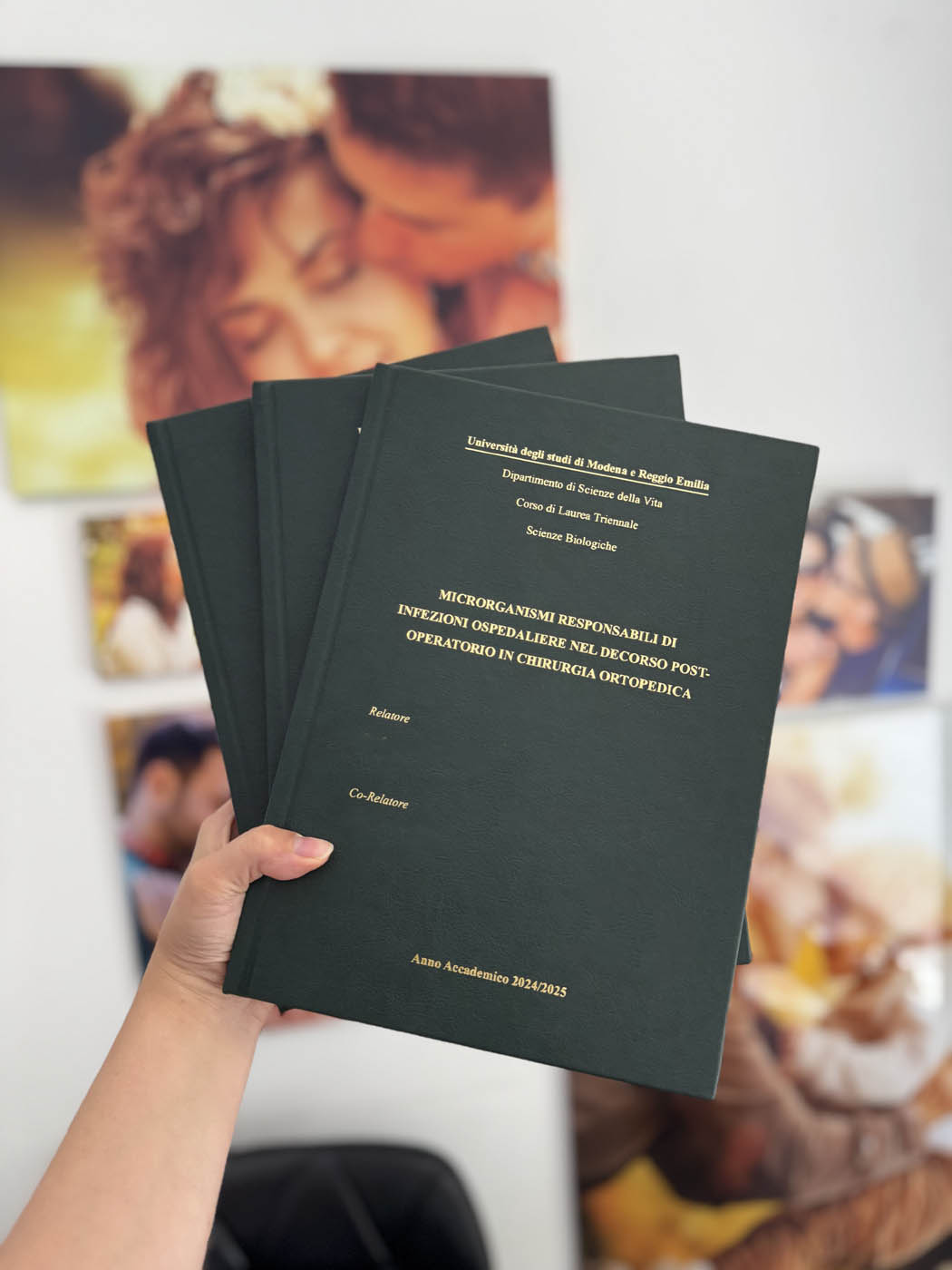Un servizio di stampa tesi curato nei dettagli, con una grande varietà di copertine e colori da scegliere dal vivo. Qualità tipografica, assistenza personalizzata e consegna rapida: la tua tesi come l’hai sempre immaginata.