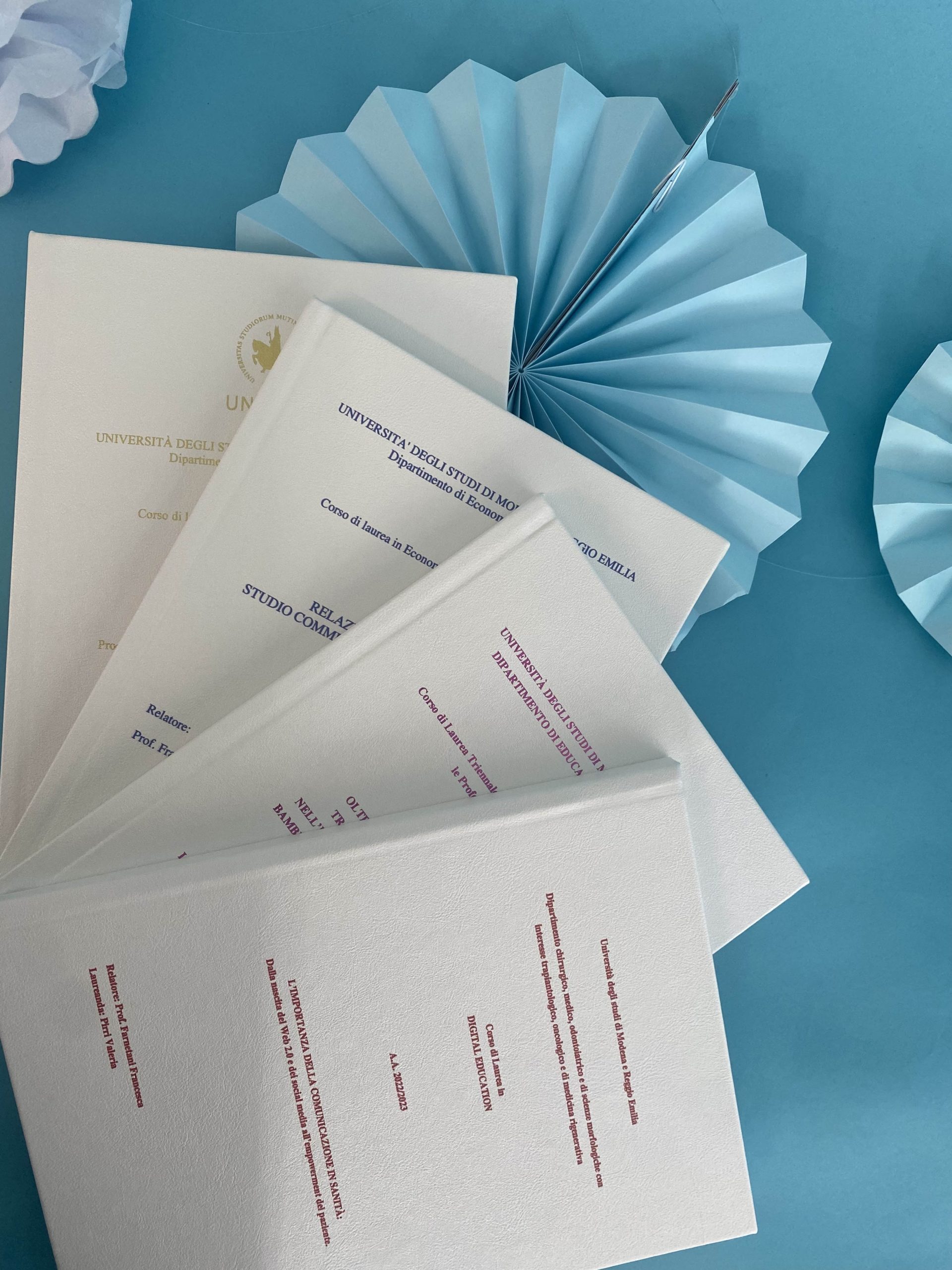 Un servizio di stampa tesi efficente, con una grande varietà di copertine e colori da scegliere dal vivo. Qualità tipografica, assistenza e consegna rapida: la tua tesi come l’hai sempre immaginata.